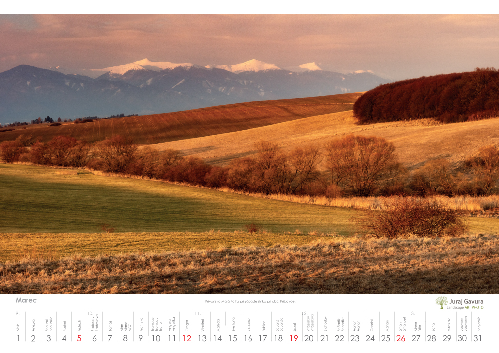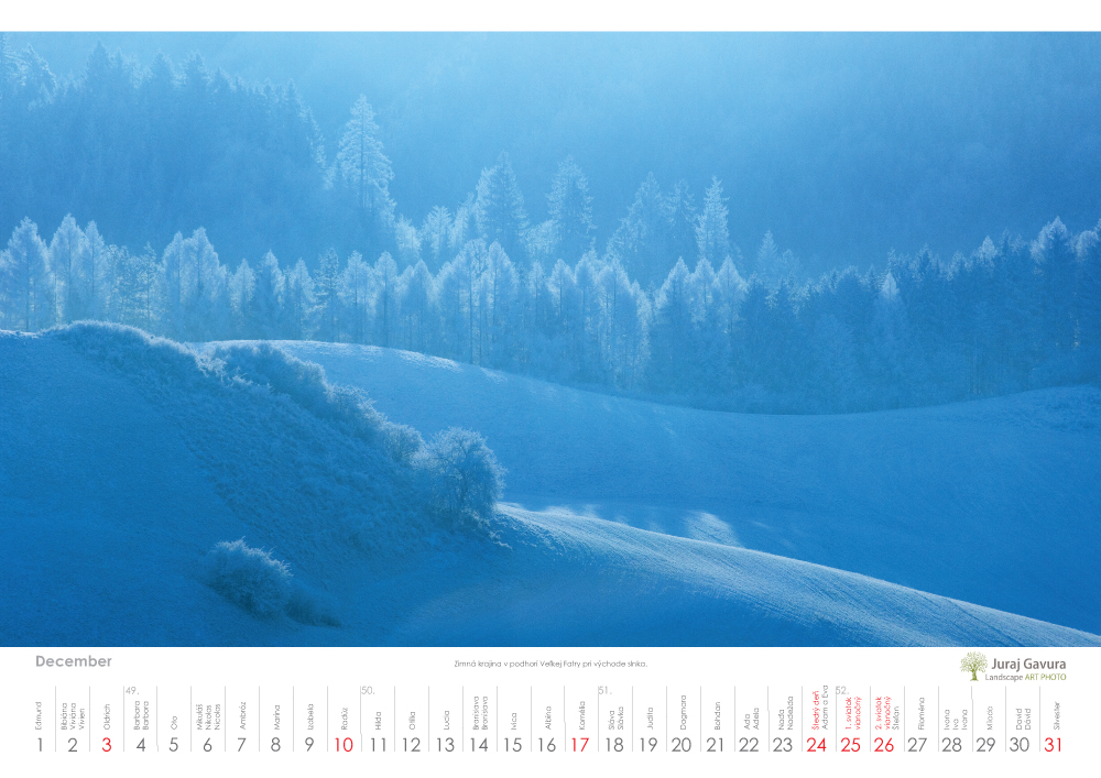 autorský kalendár s fotografiami krajiny Turca, Malej a Veľkej Fatry pre rok 2023. Rozmer kalendára je A3 (420x297mm)