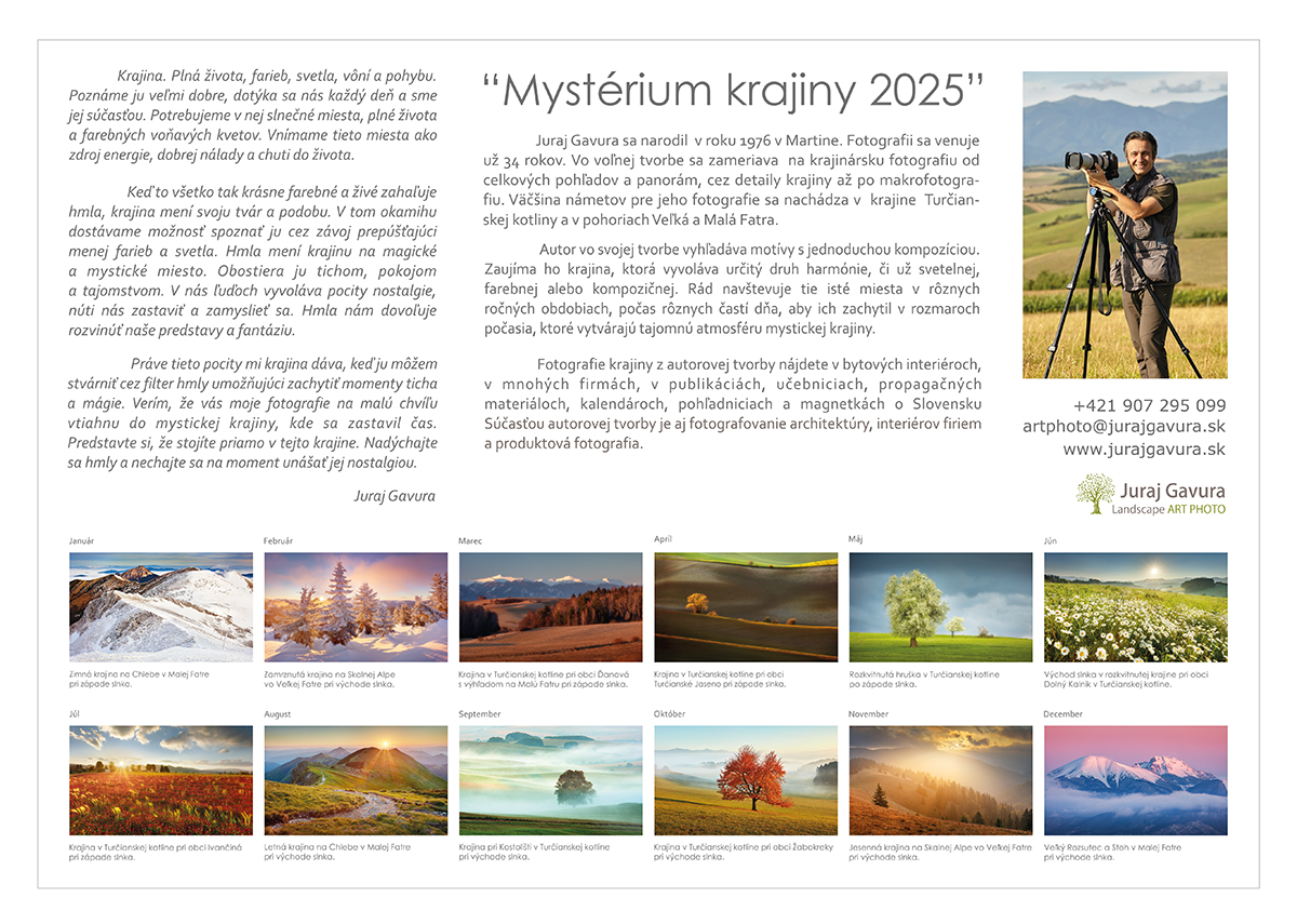 autorský kalendár s fotografiami krajiny Turca, Malej a Veľkej Fatry pre rok 2025. Kalendár získal 1.miesto v súťaži Najkrajší kalendár Slovenska 2025 v kategórii autorský kalendár. Rozmer kalendára je SRA3 (450x320mm)